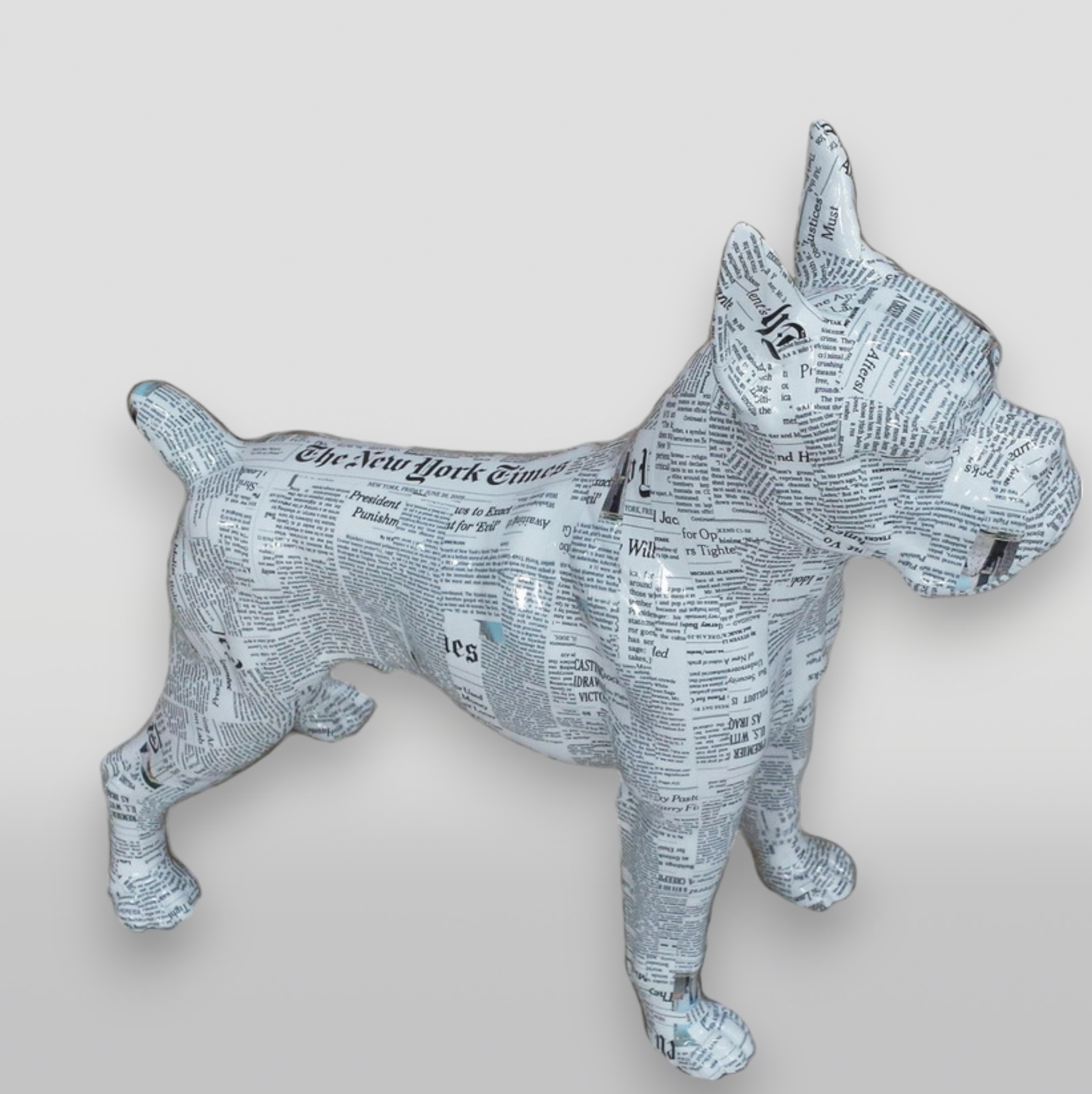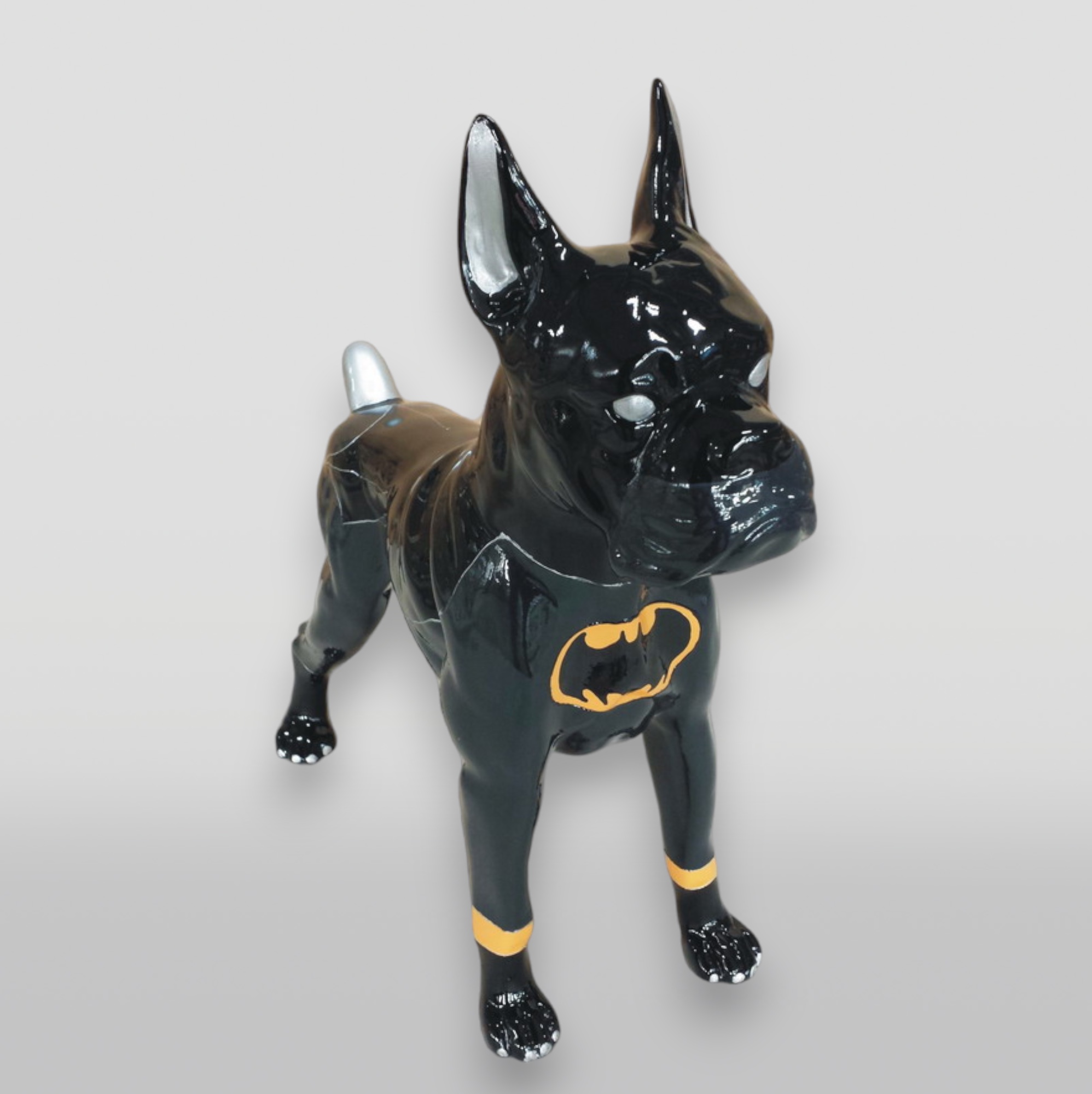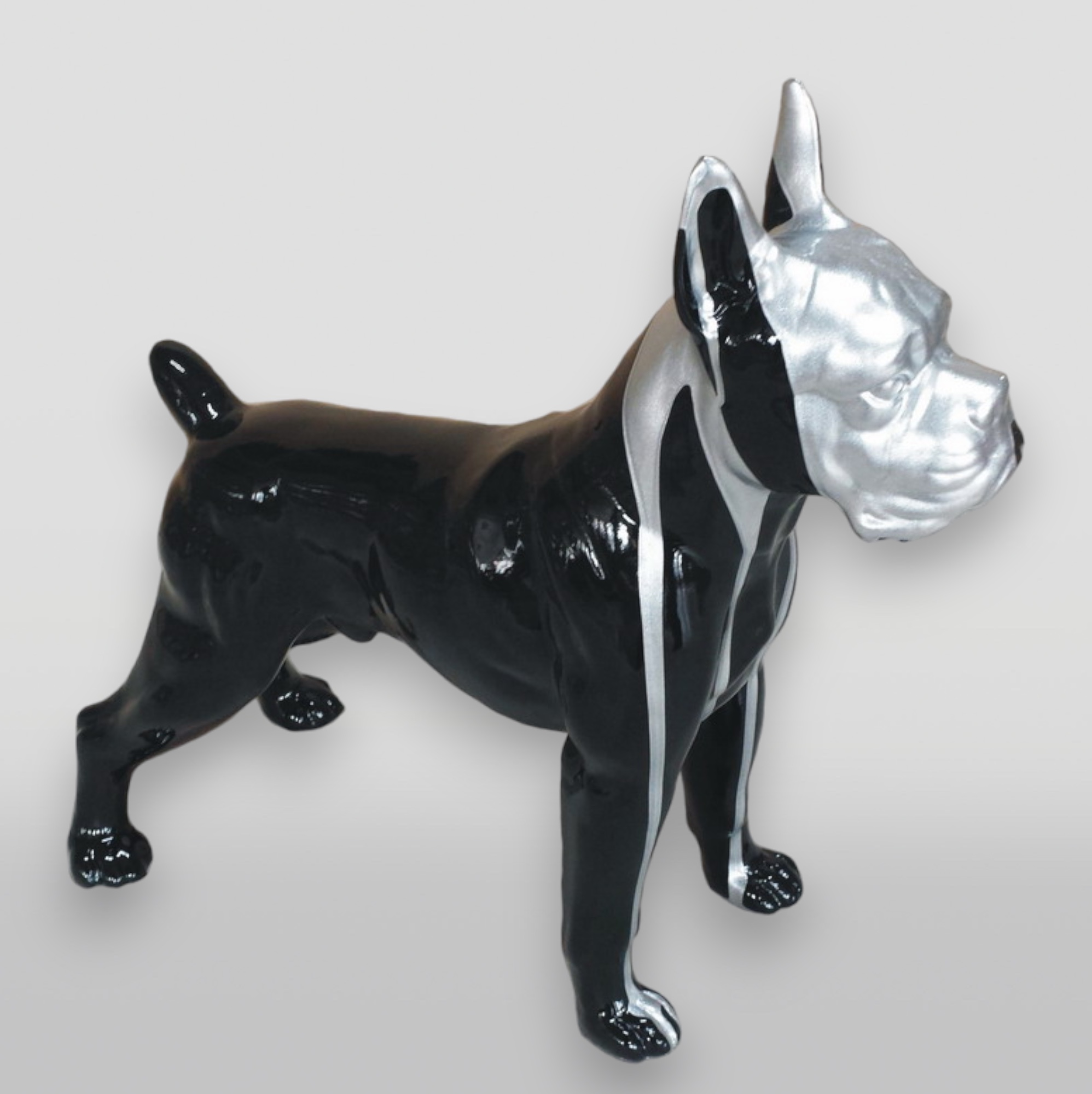 Die stehende Figur des mittelgewichtigen Boxers hat die Maße: Höhe 46 cm, Länge 51 cm und Breite 20 cm. Wenn Sie die Größe für ein bestimmtes Projekt anpassen müssen, sind wir offen für Anpassungen nach Ihren Vorgaben.