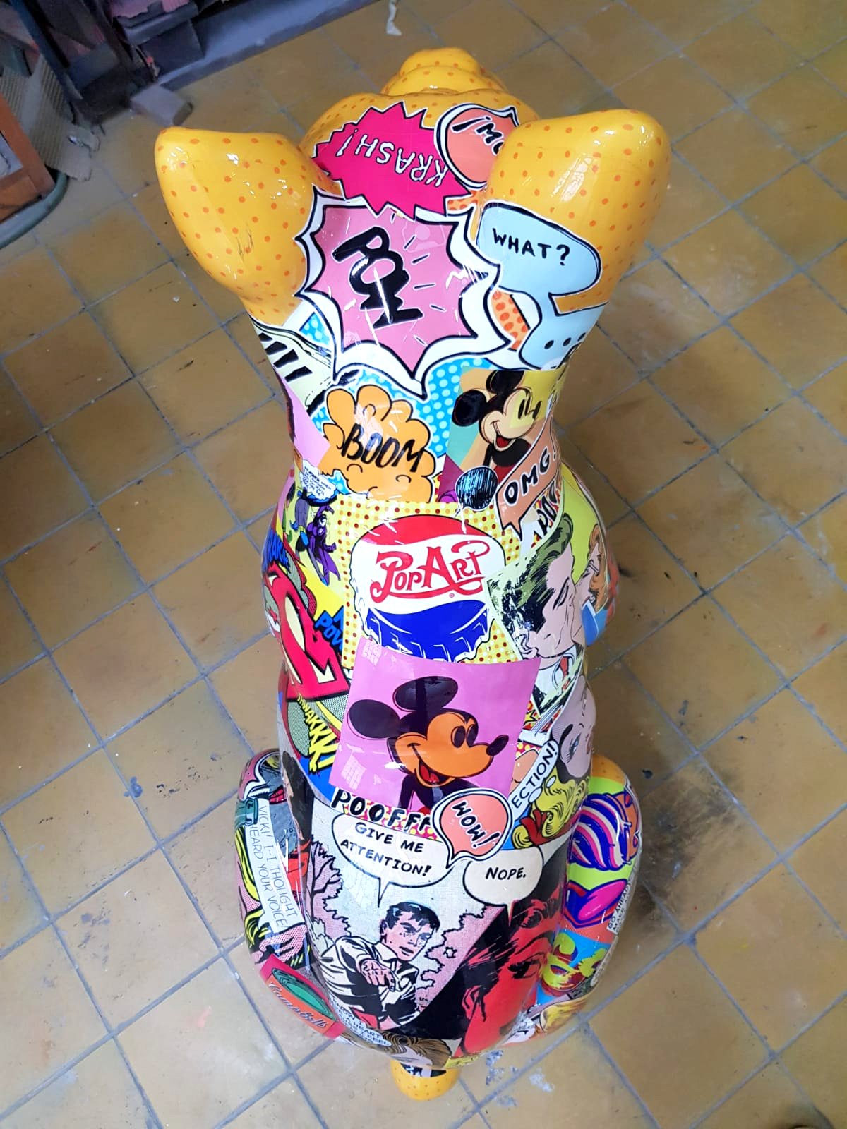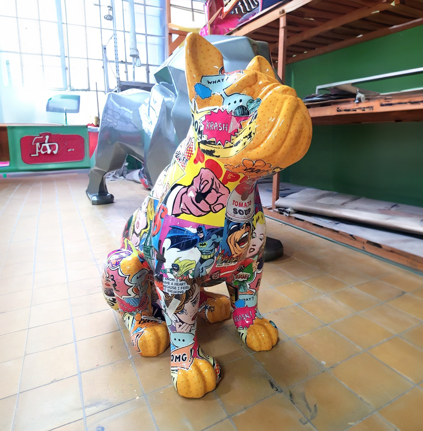 Dekorative Pop-Art-Skulptur-Mittelgroß Bulldogge SITZEND.
