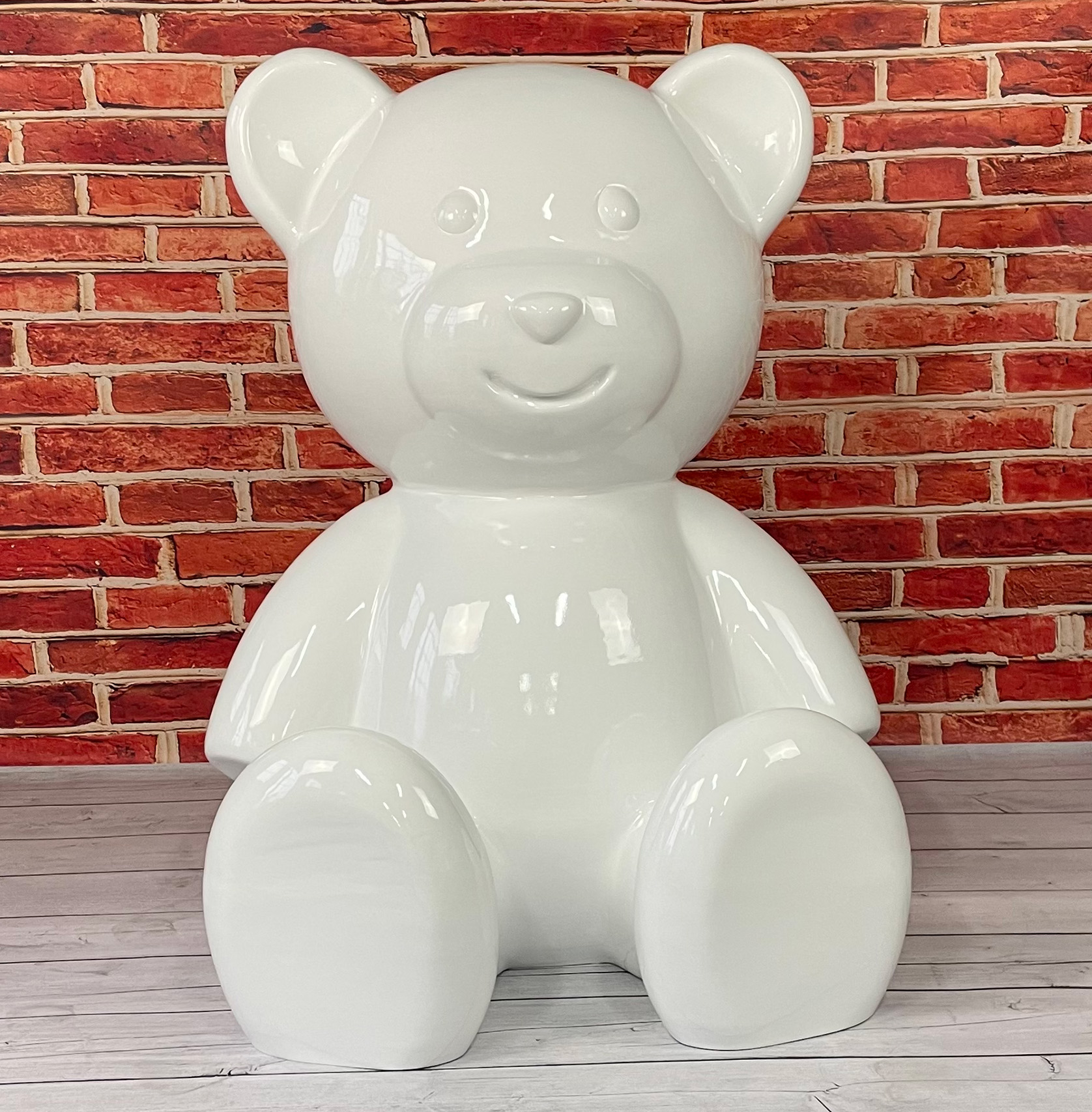 Außergewöhnliche 3D-Figur – Großer sitzender Bär – weiß