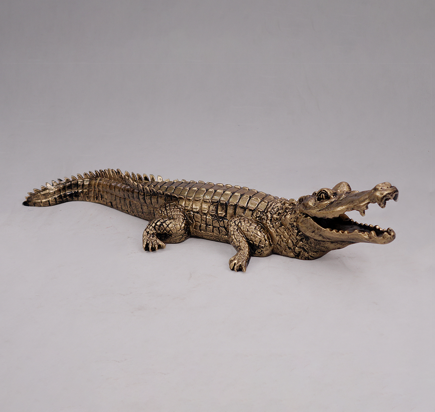 Zögern Sie nicht und fügen Sie eine einzigartige Note zu Ihrer Umgebung hinzu. Kontaktieren Sie uns noch heute, um Ihre eigene 3D Figur Krokodil 100 cm – Patina zu bestellen!
