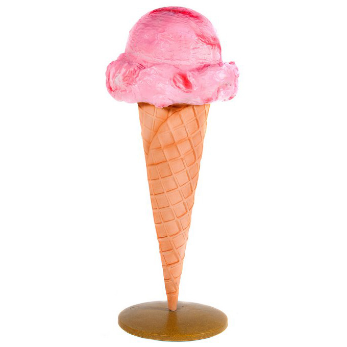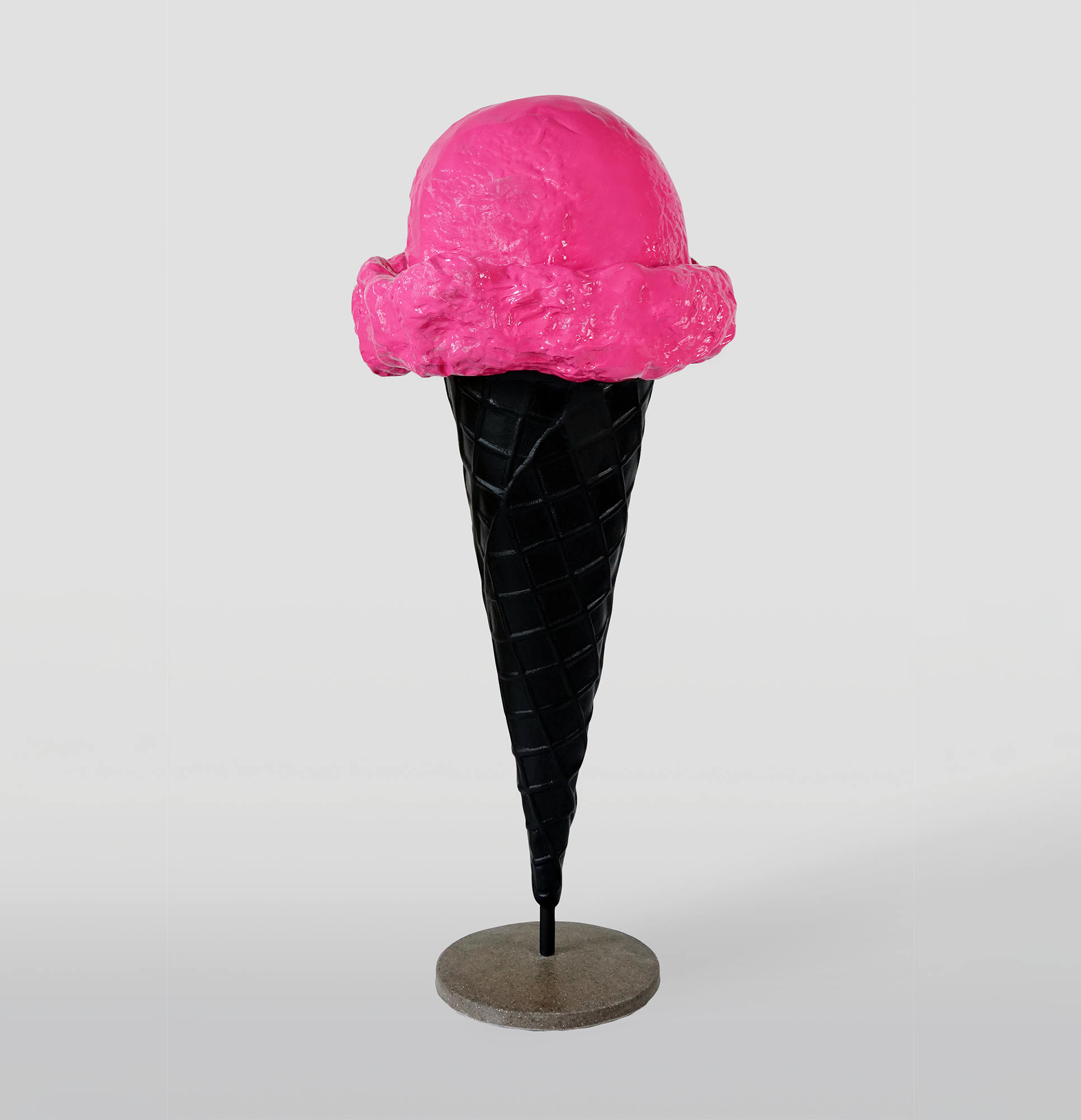 Mit Abmessungen von 155 cm Höhe und 60 cm Breite ist diese große, rosa Eiskugel so attraktiv, dass sie problemlos die Blicke von Passanten und Kunden auf sich zieht. Die realistische Darstellung von Textur und Farben macht die Figur appetitlich und realistisch, was potenzielle Käufer effektiv zum Kauf des echten Produkts verleiten kann.